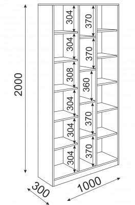 - В крайних секциях по 5 полок, из которых: три - съемные, две - жесткого крепления (через одну).