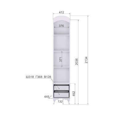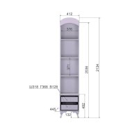 Внутреннее наполнение: Открытые полки, выдвижные ящики, 2 комплекта на шариковых направляющих.