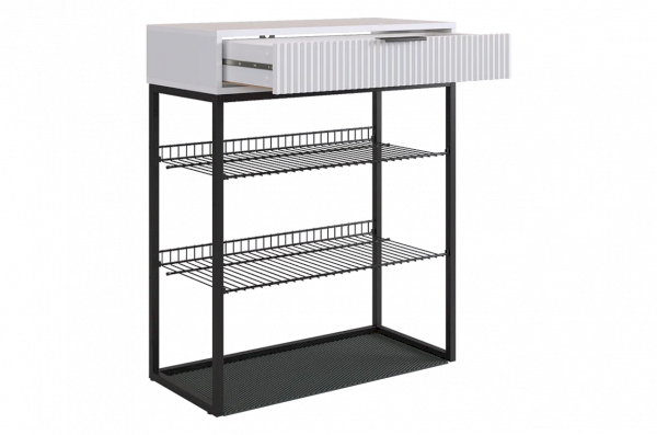 Обувница Вельвет прекрасно сочетает в себе стиль и функциональность. Её дизайн в стиле лофт идеально подходит для современных интерьеров. Выдвижной ящик с шариковыми направляющими обеспечивает бесшумное и плавное открывание, предоставляя удобный доступ к вашим аксессуарам и мелочам. Регулируемые опоры и специальный коврик обеспечивают дополнительный комфорт и защиту.