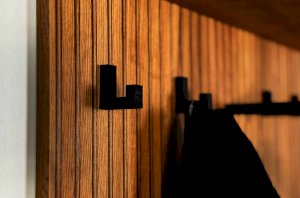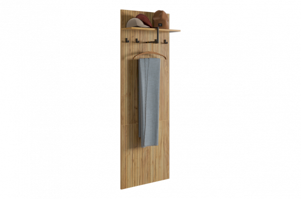Принт, имитирующий вертикальную фрезеровку придает вешалке уникальный и современный вид, добавляя текстуру и глубину. Материал вешалки – ЛДСП, что обеспечивает прочность и долговечность, а также легкость в уходе.