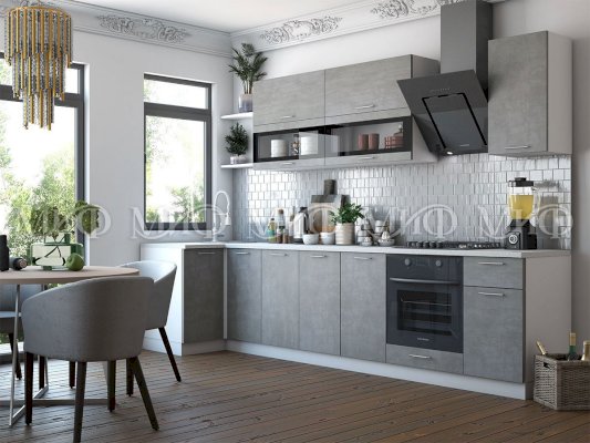 Модульная кухня Техно Бетон светлый (Миф) – товар доступен к покупке в интернет-магазине vladikavkazskiy-dommebeli.ru. Цена – 15 236 руб. без учета доставки. Стоимость дополнительных услуг и сроки получения мебели уточняйте у менеджера. Возможен безналичный расчет, оплата по карте на сайте.